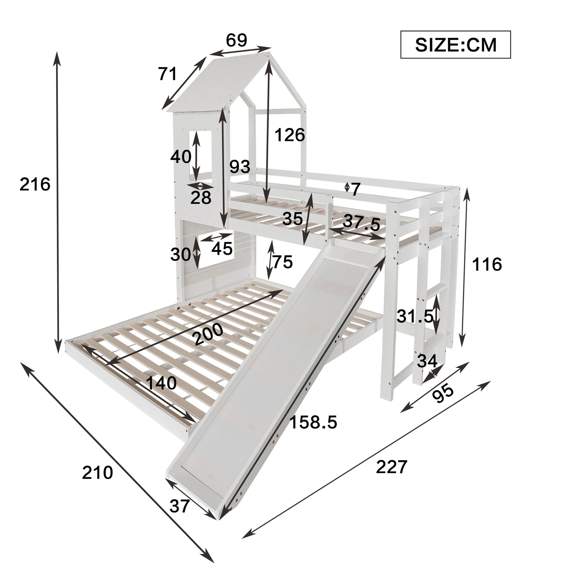 Lit Superposé Cabane avec Toboggan - Thème Maison